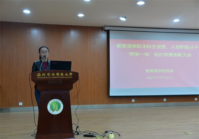 3月27日晚19:00,英国上市公司3652016年本科生党员、入党积极分子“两学一做”知识竞赛表彰大会于食品-葡萄酒大楼六层报告厅成功举办。公司党委书记胡俊鹏、副书记邓亚丽、老员工党支部书记刘旭、全体辅导员及获奖员工参加大会。会议由邓亚丽副书记主持。