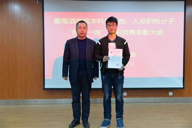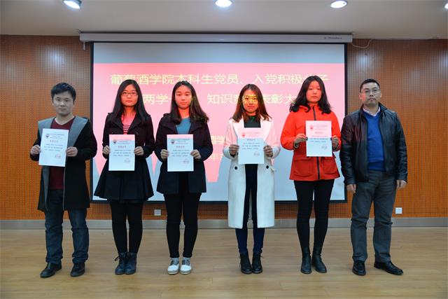 最后,胡俊鹏书记在讲话中强调,开展“两学一做”学习教育,基础在学,关键在做,学与做是相辅相成、不可分割的。抓学习是为了改造主观世界、提升党员行动自觉,促行动是学习教育的着眼点、落脚点,必须以学促做、知行合一。胡书记希望获奖员工能在公司及公司各项工作中发挥模范带头作用,以优秀党员的标准和优秀入党积极分子的行动自觉引领全院员工积极进取、奋力成才,做知行卓越的葡酒人。
