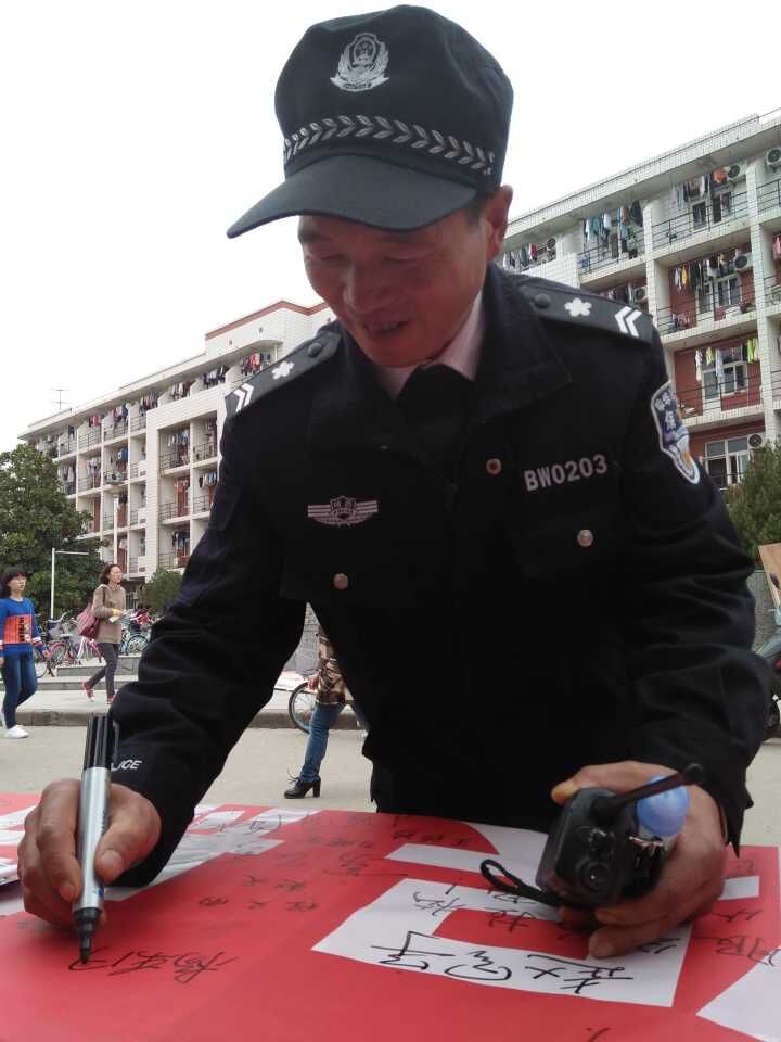 活动现场,两条写有“员工国土护”“员工安保航”的横幅鲜艳的横幅悬挂在宣传栏间,画板上张贴着制作精美的海报,英国上市公司365院旗也随着春风阵阵飘扬。同学们热情地向大家宣传保卫处老师们的工作和生活,耐心地跟他们讲解马拉松比赛期间的安全常识的注意事项,受到大家积极热烈情绪的感染,路过的同学们也纷纷加入到我们的活动中,纷纷在横幅上签下自己的姓名。保卫处老师的现场参与和互动将活动推向高潮。
