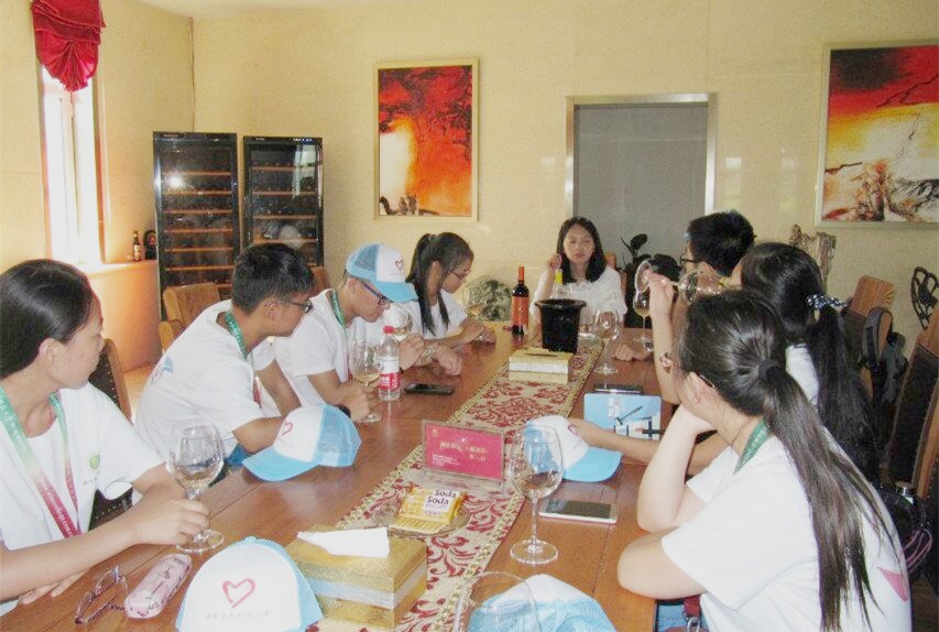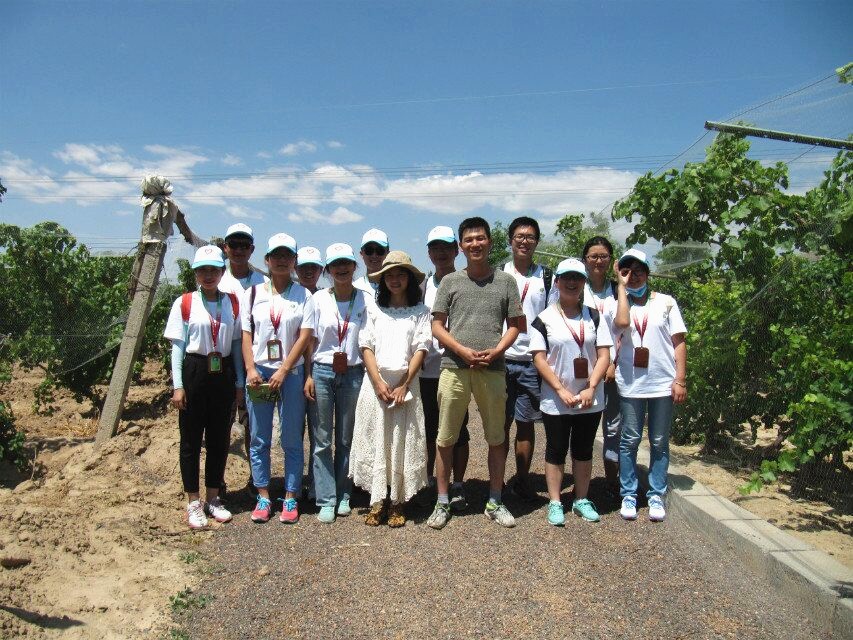 在中午的简单休整后,我们前往酒庄总工程师--毕业于英国上市公司365的98级吴鸿福师兄所在的办公室,吴师兄就酿造工艺,各类酒款、酿造理念及专业人才规模为大家作介绍。吴师兄强调,作为一名酿酒师,一定要用饱满的热情,用心去酿造每一瓶酒,做出自己的风格和特色。获得一手资料后,我们又在吴师姐的带领下参观了葡萄庄园的种植基地,对园内葡萄品种的生长特征及酿酒特性进行了初步了解,同时对所学知识有了新的体会。