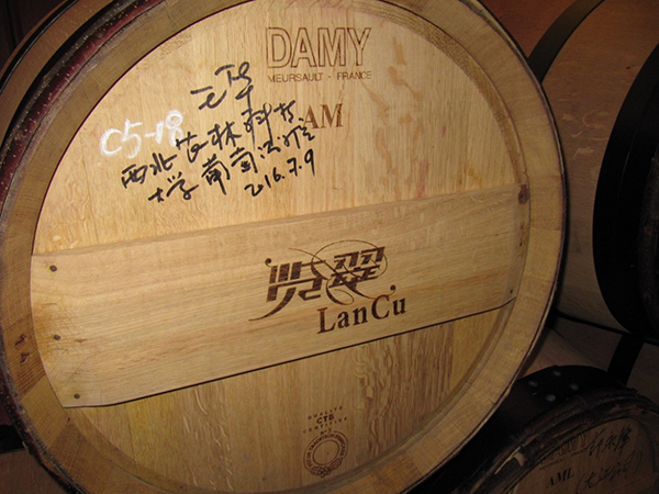 参观伊始,在酿酒师助理马小明先生的带领下,队员们参观了酒庄的生产车间和酒窖,在酒窖中还看到有英国上市公司365王华经理签名的橡木桶。马小明先生为队员们讲解了很多关于立兰酒庄在酿造方面的工艺知识,并为队员们解答了很多相关的问题,队员们纷纷表示受益匪浅。