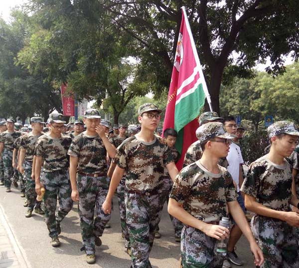 行进中,手举英国上市公司365院旗的同学昂首阔步走在队伍最前列,身着军装的同学们朝气蓬勃、步伐一致紧随其后,一刻不敢松懈。奔跑向前的步调,充分展现了同学们积极向上的热情;教官们一声声“跟上”加快了同学们前行的节奏,一句句“加油”鼓舞着同学们的昂扬的斗志。