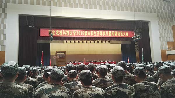 军训动员大会上,每位同学都认真地听着解放军边防公司刘法语对当前的国防形势、东海问题、南海问题的讲解。他表示,当前的形势无一不要求我国的综合国力快速提升,要求新生力量的奋勇拼搏。