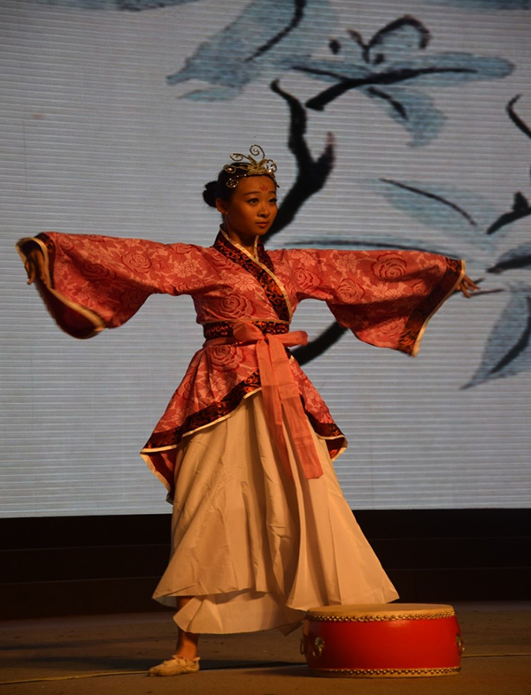 干怀瀛同学舞姿曼妙,一支优美的《相和歌》,一举一动,落落大方,舞台上的青春绽放诠释着我们葡酒人的个性飞扬。