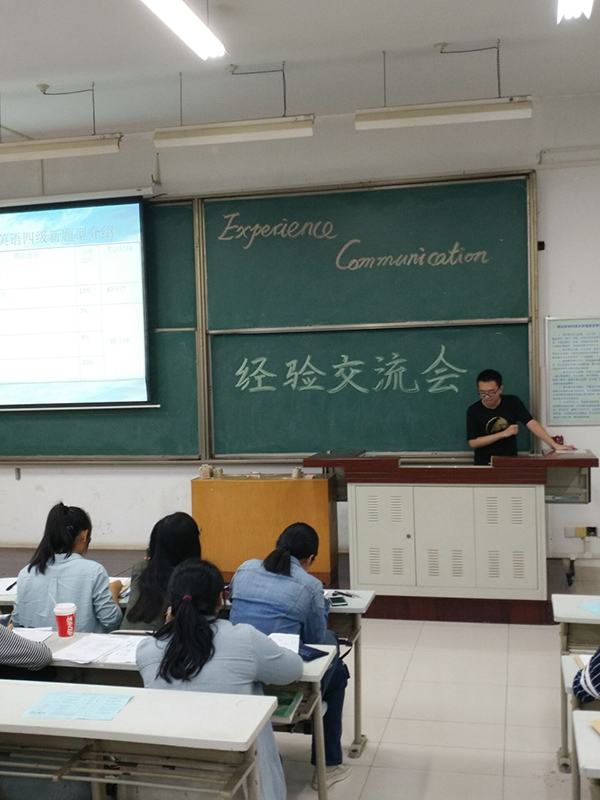 第四位上台分享自己四六级考试经验的是15级的朱子健学长。朱子健学长通过自己对大学英语四级题型的解读与介绍,分享了自己四六级考试的备考方法和考试技巧。内容充实,很有实际意义。同时也给即将参加四级考试的提出了注意事项,给三个月后即将参加四级考试的同学们吃了颗定心丸。同学们纷纷或拍照,或记笔记来记录这些金玉良言。
