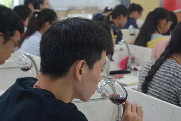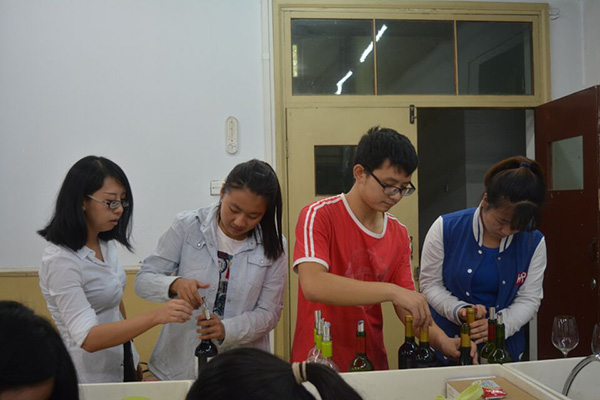 这次酒会有三分之一的大一新生参加,大家都对葡萄酒的很多知识都不了解,但是没关系,雅琦学姐现场教学,教你如何开酒,闻酒,品酒,说酒,还有给别人倒酒时应注意的一些礼仪问题。最让让人流连忘返的就是品酒了,五款智利名酒慢慢倒入酒杯,丝绸般的红酒慢慢留入,浓郁的香气扑面而来,就如走在黄金麦浪的乡村小道,陶醉不已,让我这些大一新生感受到了葡酒的真正魅力。