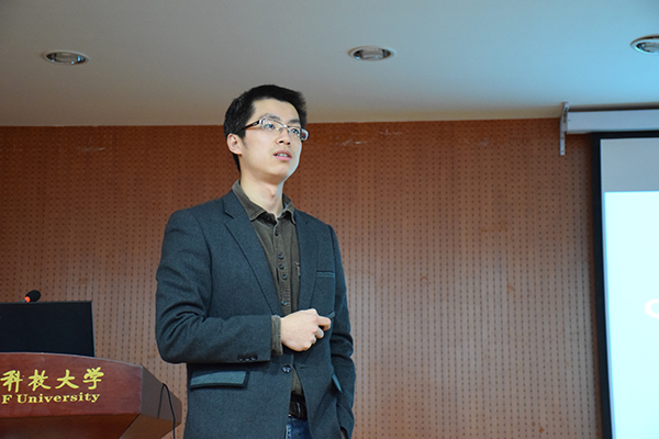 会议伊始,陈龙老师开门见山、直切主题,以科技创新成果引入,加之进行细致的案例分析告诉各位学子,科创并非遥不可及的AI或VR等高新科技,而是把身边各种已有事物进行改进完善并加以落实。陈老师为同学们提出了“问题→目的→方法”的科创思路将大家带入了深思。