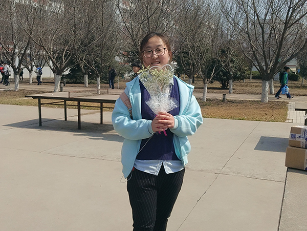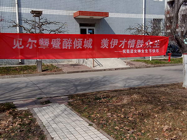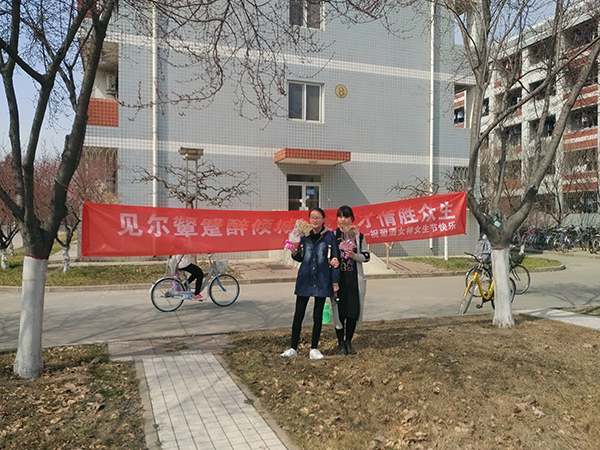 经过员工会权益部干部们的精心准备,中午12点,女生节系列活动正式拉开帷幕。工作人员们早早来到女生宿舍楼下集合,为即将回到宿舍的少女们准备节日惊喜,先把写着“见尔颦蹙醉倾城,羡伊才情胜众生”的横幅挂在树上,把预定好的鲜花备齐。伴随着下课的铃声,回宿舍的人群逐渐增多,活动现场逐渐热闹了起来。事先准备好的志愿者看见女生迈向宿舍时,将藏在背后的花送给她们,给她们一个惊喜,并祝她们女生节快乐,希望她们每天都和今天一样倾城,才情惹人羡艳。