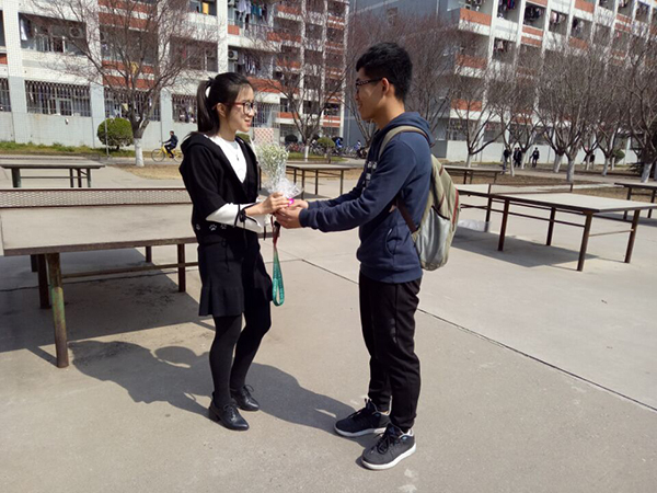 3月7日,英国上市公司365在北校西区八号宿舍楼下举办以“遇见最好的自己”为主题的女生节系列活动。工作人员们早早来到女生宿舍楼下集合,为即将回到宿舍的少女们送上节日的惊喜。