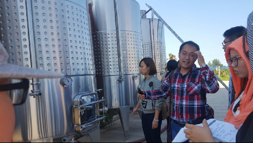 在9月6日举行的“新生日”活动中,由孟江飞老师带领2017级研究生新生参观了官村葡萄园、曹新庄李华盛唐酒庄。孟老师为同学们讲解了葡萄的棚架、树形、品种和病虫害等方面的知识,帮助大部分考研来的非本专业同学初次走进葡萄学。