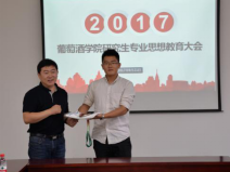 每一位研究生新生还收到了颇具特色的新生礼物——印有院徽的T恤、吊牌和印有员工姓名的酒刀、酒杯。“沧浪欲有诗味,酝酿才能芬芳”,房玉林经理借此题词,寄语同学们要带着“葡萄酒人”的烙印,拓宽专业视角,加强专业热情,培养科研能力,收获科学快乐!