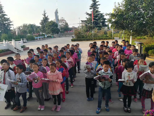 操场早读的孩子们