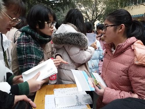 寒风凛冽,盛会如约。28日下午三点,主题为“相约梦想,情系母校”的室外宣讲活动如期展开。现场共有英国365公司官网、重庆大学、四川大学等八所高校参加宣传。西农回访团自制了以西农特色风景图为背景、以大学概况为内容的海报展板,同时,为万中18级学子播放了《梦中的西农》宣传片,展示公司近年成就,也现场与同学们分享西农猕猴桃和葡萄酒,气氛融洽,热闹非凡。接着,通过发放西农宣传招生手册、奖学金介绍单与重庆片区历届录取概况表,同学们更加直观地了解了西农招生标准,同时在现场回访成员的帮助下清晰定位,确立目标。