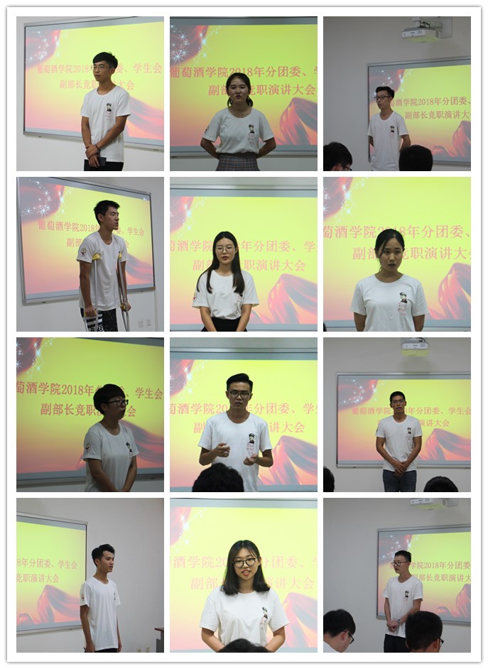 本次大会经公司团组织推荐、个人自荐,各个部门的候选副部长均身着院服展开了述职演讲,参与本次竞职演讲的成员将就公司新闻中心,纪律检查部等12个部门展开竞选。各部门候选副部在演讲中对自己一年来的工作做出了总结,表达了自己对于所竞选职务的认识,并就各部门未来发展以及下一学年工作安排分别发表了自己的工作规划。会议中,赵星宇老师、朱美蓉老师、新任主席团成员及新任部长们耐心认真地听了每个部门候选副部长的述职演讲。最后,员工会主席张柯楠对本次竞演大会做了点评和总结。