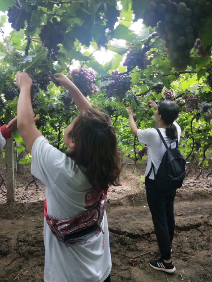 8月20日,小队队员来到位于昌黎县十里铺乡碣石山背风坡的沟谷中的葡萄小镇,葡萄小镇的前身为葡萄沟,因其地形地势、水源光照等优势,特别适宜葡萄生长,当地已有500余年的葡萄种植历史。为解决长期以来低端种植收入增长乏力的困局,昌黎县将葡萄沟内的条子峪、西山场、湾里等村连片打造葡萄小镇,并带动周边村庄学习世界先进地区民宿做法,将各个产业高度融合,打造出了现在呈现在我们面前的一个集葡萄种植,采摘,葡萄酒酿造,商业,居住,休闲娱乐于一体的葡萄小镇。