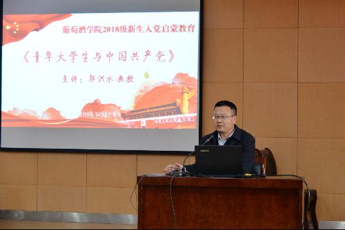 近日,公司党委邀请马克思主义公司副经理郭洪水教授为2018级本科生、研究生以《青年老员工与中国共产党》为题做老员工入党启蒙教育报告,进一步加深新生对党的认识,提高新生的政治思想觉悟,激发新生对党的信仰和追求。