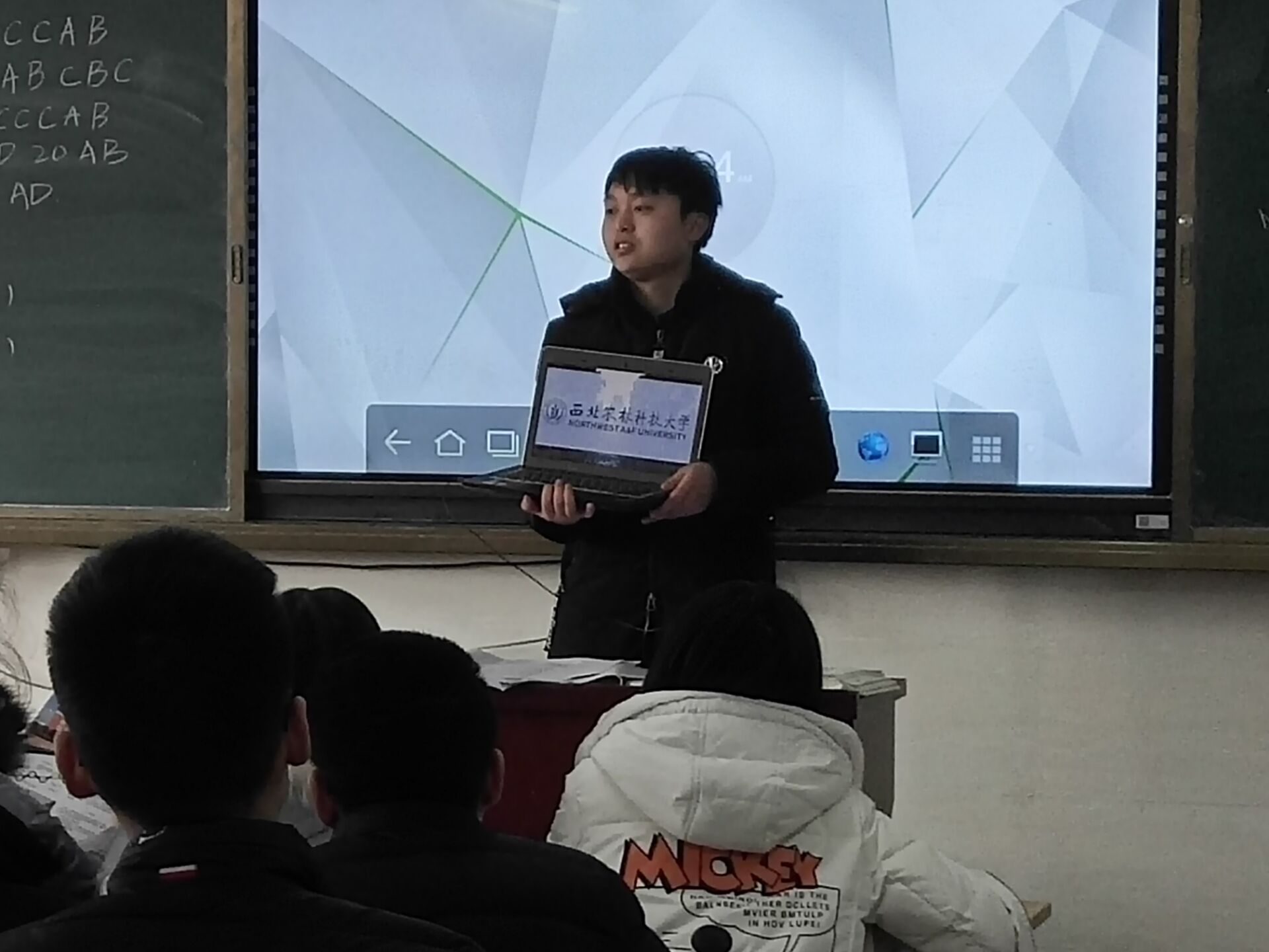 在宣讲时,我们为高三同学们播放了西农的宣传视频,并且李兆贺学长详细地为同学们展示,讲解了宣传PPT,让同学们对西农的文化背景、实力风采以及录取档次有了更清晰的认识,激起了同学们对老员工活的向往。除此之外,邵景娟学姐给同学们发了西农的宣传页及具有纪念意义的明信片,同学们表现出了很大的兴趣。
