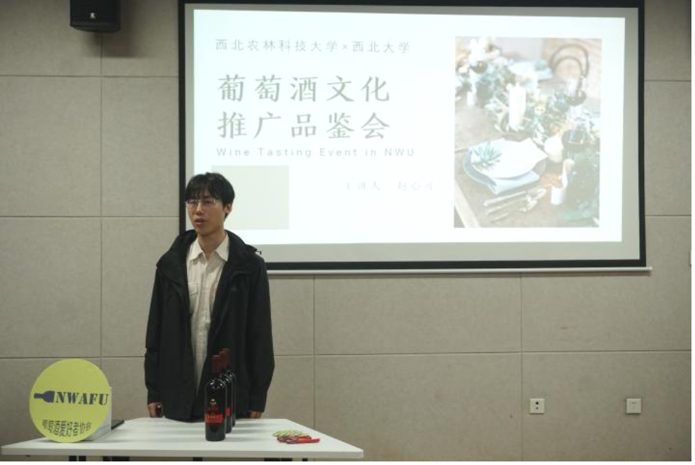 本次品鉴会的主讲人为西农葡萄酒爱好者协会副会长赵心可同学。品鉴会活动过程中,赵心可围绕葡萄酒的类型、开酒方式以及品鉴方法等内容为同学们生动形象地讲解了葡萄酒的基础知识。同时带来四款各具特色的优质中国葡萄酒与同学们边学边品、交流互动,活动环节丰富有趣,引人入胜,收获了在场同学们发自内心的掌声。