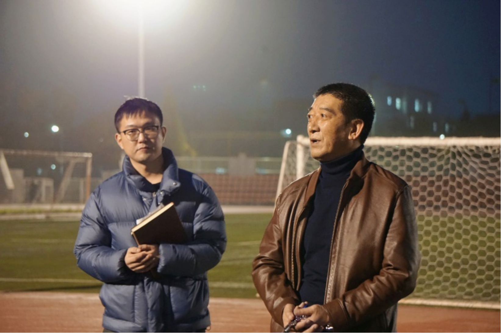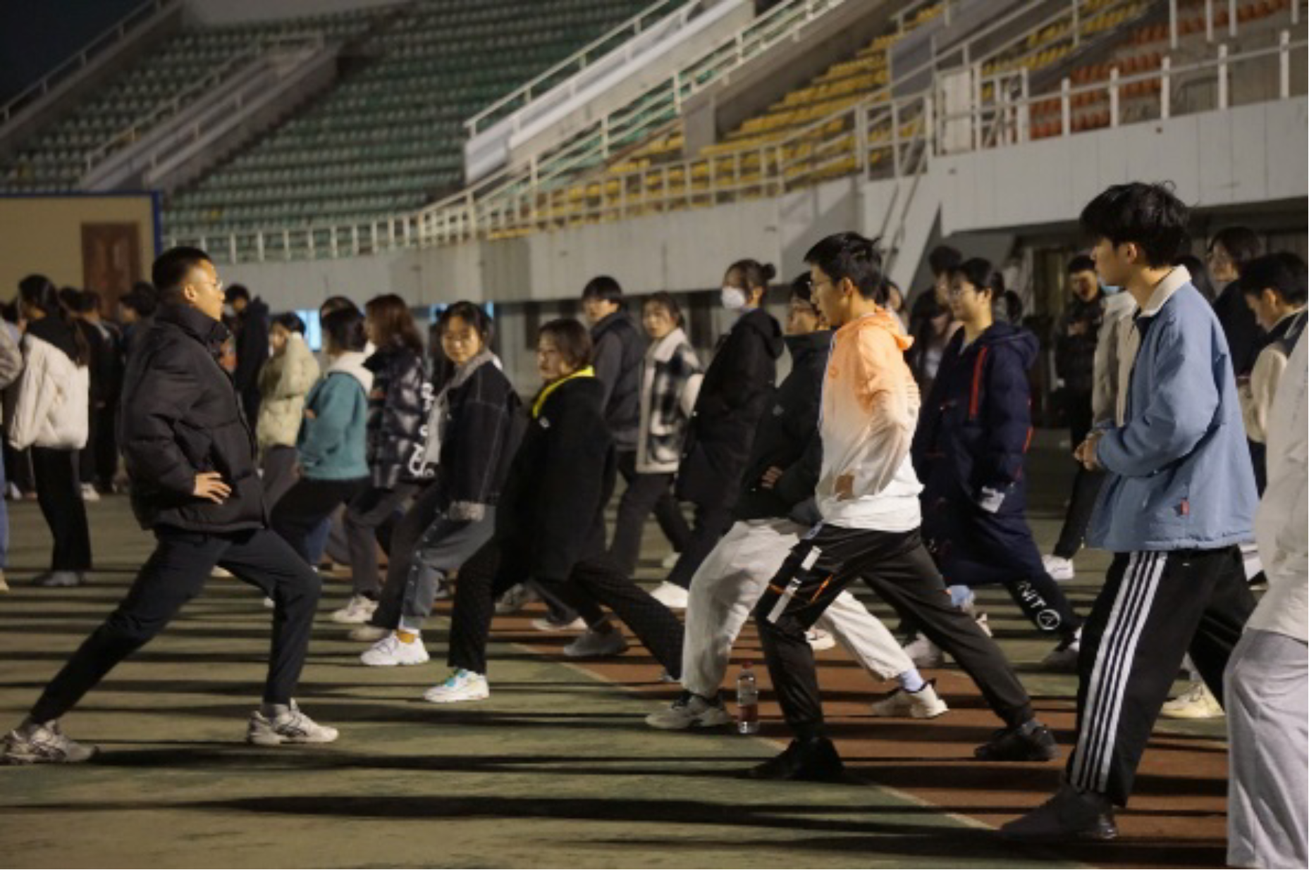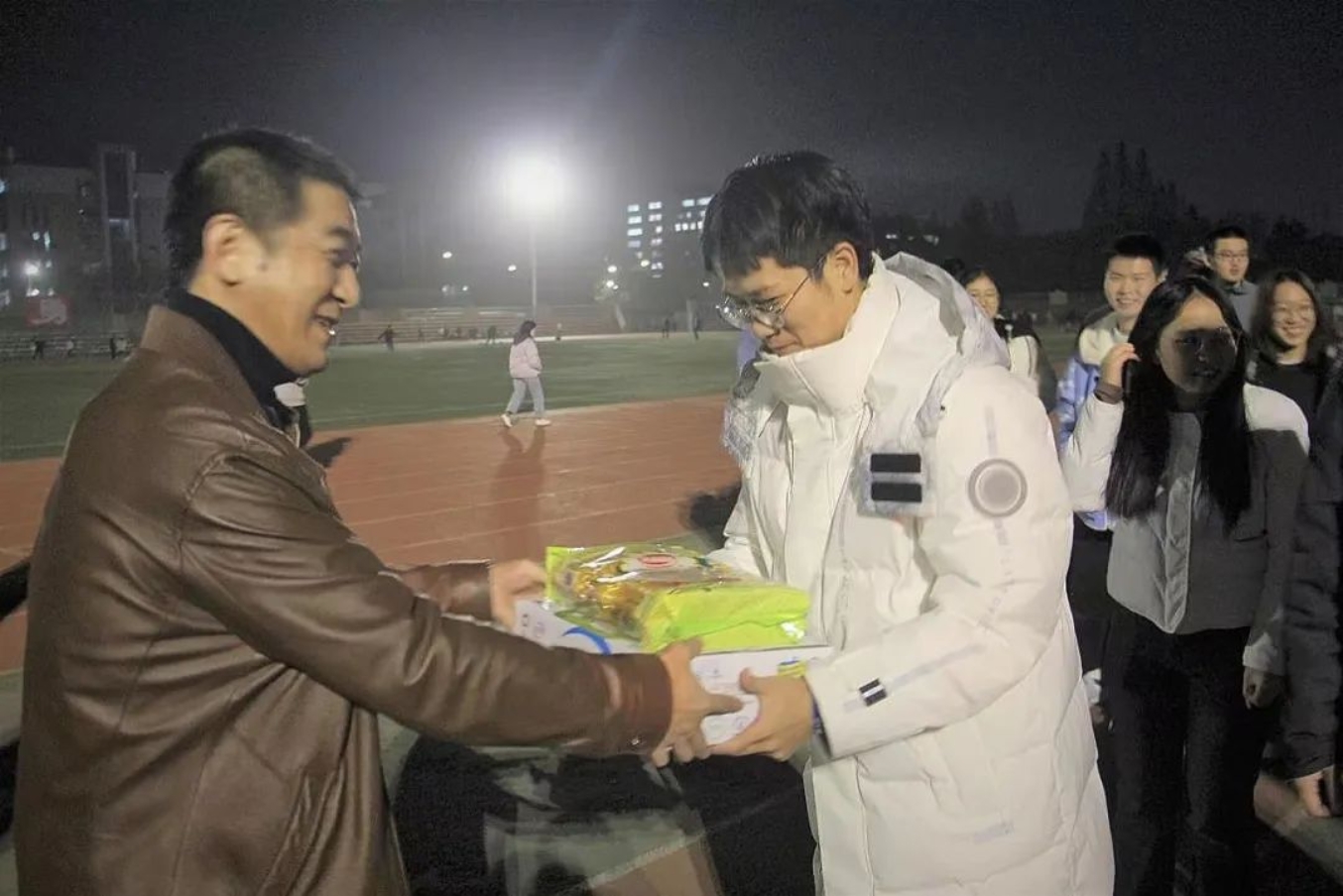 初冬秋尽早霜,银杏枝头叶黄。天气渐冷,正是同学们锻炼身体的黄金时期。为进一步加强员工阳光体育运动,促进员工身体素质提升,公司展开了为期一个月的冬训活动。11月28日晚,经理刘树文、辅导员袁伟、体育辅导员郭亮辰来到田径场,看望慰问参加冬训的同学们。