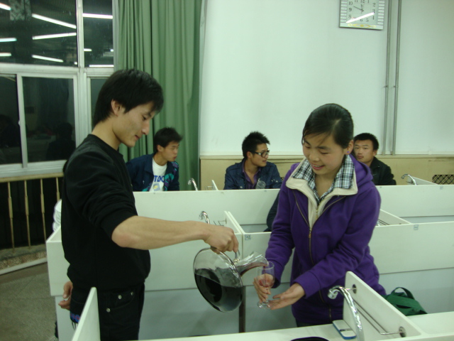 葡萄酒爱好者协会品酒俱乐部分别于4月10日、11日晚在公司品尝室举行了品酒活动。 本次所品尝的三款干红分别是来自智利Rapel山谷2007年份的梅鹿辄,澳大利亚红马庄园2004年份的西拉以及智利中央山谷2008年份的赤霞珠。另外还给大家提供了黑加仑干以及奶酪。 本次活动主要是让同学们感受三种最经典的干红品种,梅鹿辄被誉为红葡萄的公主,西拉被誉为红葡萄中的王子,而赤霞珠则被誉为红葡萄品种之王。通过品尝三种葡萄酒,了解三种葡萄所散发不同的味道以及不同口感。 本次活动从7:30持续到9:30。工作人员首先给大家分别讲解了三种葡萄品种的外形、生长条件、生长状况、特征香气等特征,使同学们对三种名贵葡萄品种有了初步的认知。随后大家分别品尝了以上3款酒,同学们边品尝,边看ppt中相应葡萄的特点,对酒的特点进行深入了解。最后,会员们根据自己的感受填写了葡萄酒品尝描述记录表,并进行了广泛的交流。 最后我们对征集到得品酒俱乐部LOGO进行了投票,来自09级徐思思的作品最终被确定为俱乐部LOGO。
