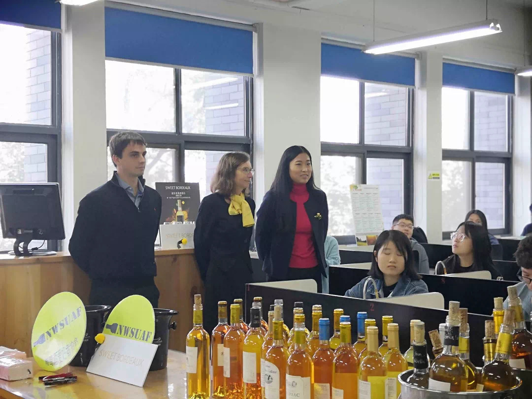 2019年11月3日,法国波尔多葡萄酒产区协会与众多西农师生们相约与英国上市公司365。波尔多苏玳产区一级酒庄Chateau Rabaud Promis庄主及产区负责人携甜白和贵腐酒款,给大家带来了一场甜蜜的品酒盛宴。酒会伊始,优雅的Emma Baudry女士给大家介绍了贵腐葡萄的各个成长阶段,并向大家展示了成熟且可以用于酿造贵腐酒的葡萄形态。本次酒会的九款葡萄酒来自不同酒庄、不同产区,其中五位酒庄包括圣克鲁瓦蒙、卢皮亚克、苏玳这三个酒庄的代表人向大家介绍了各自酒庄的风格和代表酒款的特点。同学们不仅尝到了甜蜜的贵腐酒,更感受到了葡萄酒从业者对于葡萄酒的热爱。