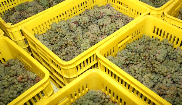 采运回来的公司自主选育的爱格丽白色葡萄原料-要求优质、成熟、卫生