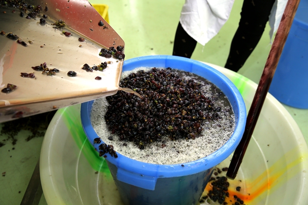 红葡萄醪入不锈钢罐