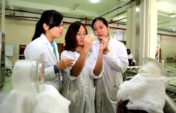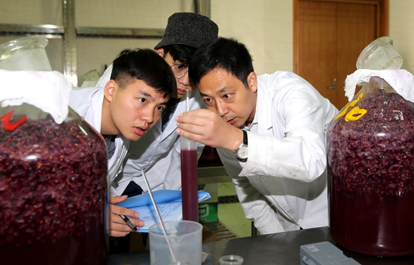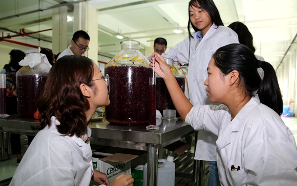 葡萄美酒是用心酿造出来的。陶永胜教授带这门实验课已经14年了,他说,这门课虽然是选修课,但每年都爆满,“员工很喜欢做酒的实际体验,喜欢葡萄汁到葡萄酒整个过程的变化,喜欢问为什么,生怕那个步骤做错了,影响了酒的最终质量。”