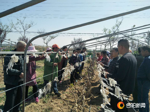 在科技副镇长李婉平、乾落村第一书记韩锁昌的积极沟通组织下,张宗勤教授前往乾落社区、灵井村、坊西村三大红提示范站了解情况,同时现场提出应急技术措施降低霜冻危害,周围群众自发聚集向张教授咨询探讨。张教授同时通过微信群、公众号等形式及时发布应对措施,让更多果农掌握补救技术,开展科学自救,将灾后损失降到最低。