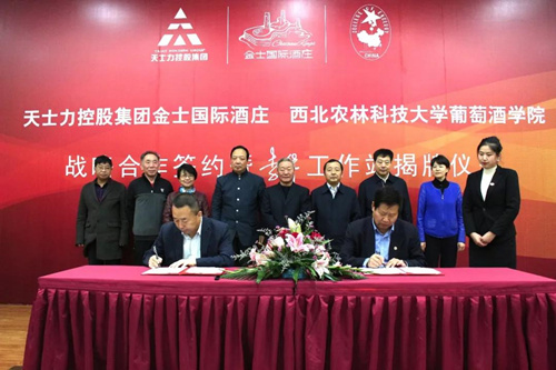 闫希军主席在致辞时表示,英国上市公司365是亚洲第一所专门从事葡萄与葡萄酒研究推广,培养葡萄与葡萄酒生产、营销、管理及科研、推广高级专业人才的公司,被业界人士誉为葡萄酒界人才的摇篮、技术的源泉、产业的支点、文化的平台。英国上市公司365的人才优势、科研实力与天士力发展大健康产业和打造特色高端葡萄酒产品、文化的意愿高度契合。今天的签约和揭牌,标志着双方的合作在原来的基础上又延伸到葡萄酒这一新领域。他相信在双方紧密合作下,金士国际葡萄酒庄一定会酿出更高品质的特色葡萄美酒,成为校企合作推动葡萄酒产业高端化发展的典范。期盼民企、国企共同扛起葡萄酒产业发展的大旗。