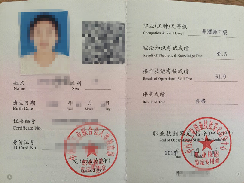 考试合格,即可获到人力资源和社会保障部颁发的《品酒师职业资格证书》。如是在校员工,可以在大四取得毕业证书时,同时发放。