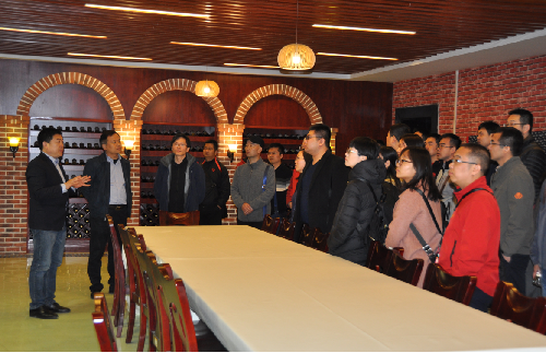 经理房玉林介绍了公司发展历史、团队队伍建设、人才培养模式、科研推广、国际合作与交流等方面的内容。在综办工作人员的组织下,房玉林陪同来访客人考察了教学实验示范中心、地下酒窖等。