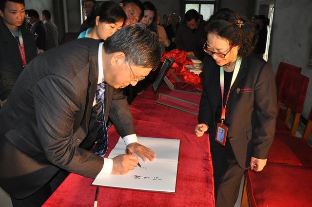 中国科学技术协会副主席、十二届全国人大常委会/人大常委会委员冯长根先生等领导在新大楼题名录上签名