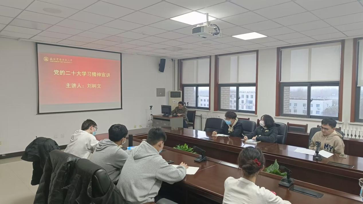 11月29日下午,经理刘树文为公司第二十三期团分校培训班全体同学宣讲党的二十大精神。院分团委副书记袁伟和三十余名同学共同聆听了此次讲座。