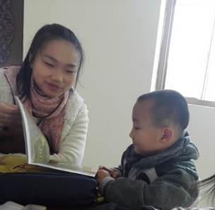 志愿者在给孩子讲故事