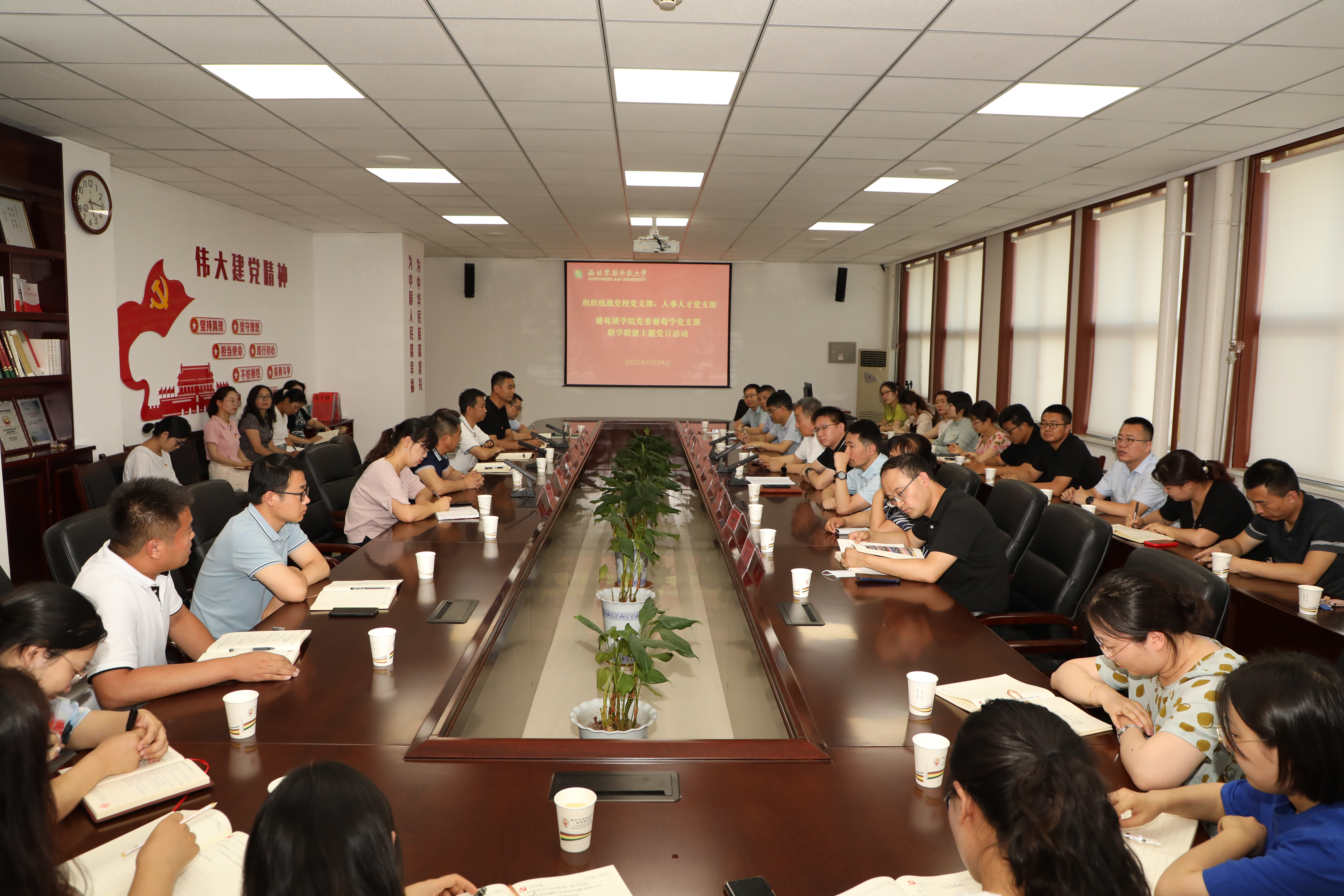 6月29日下午,公司组织统战党公司党支部、人事人才党支部与公司葡萄学党支部开展联学联建主题党日活动。公司党委原常务副书记赵忠出席活动。组织统战党公司党支部书记、党委组织部常务副部长郑伟,人事人才党支部书记、人事处处长杨耀荣分别带领各支部成员参加活动。公司党委书记郭建东、经理刘树文、党委副书记徐三友等参加了联学联建主题党日活动。活动中,葡萄学党支部书记惠竹梅作“弘扬科学家精神,创建样板党支部”的经验分享,刘旭等与会成员分别结合自身教学、科研经历阐述了自己对传承科学家精神,以党建带动团队建设的感悟和体会。