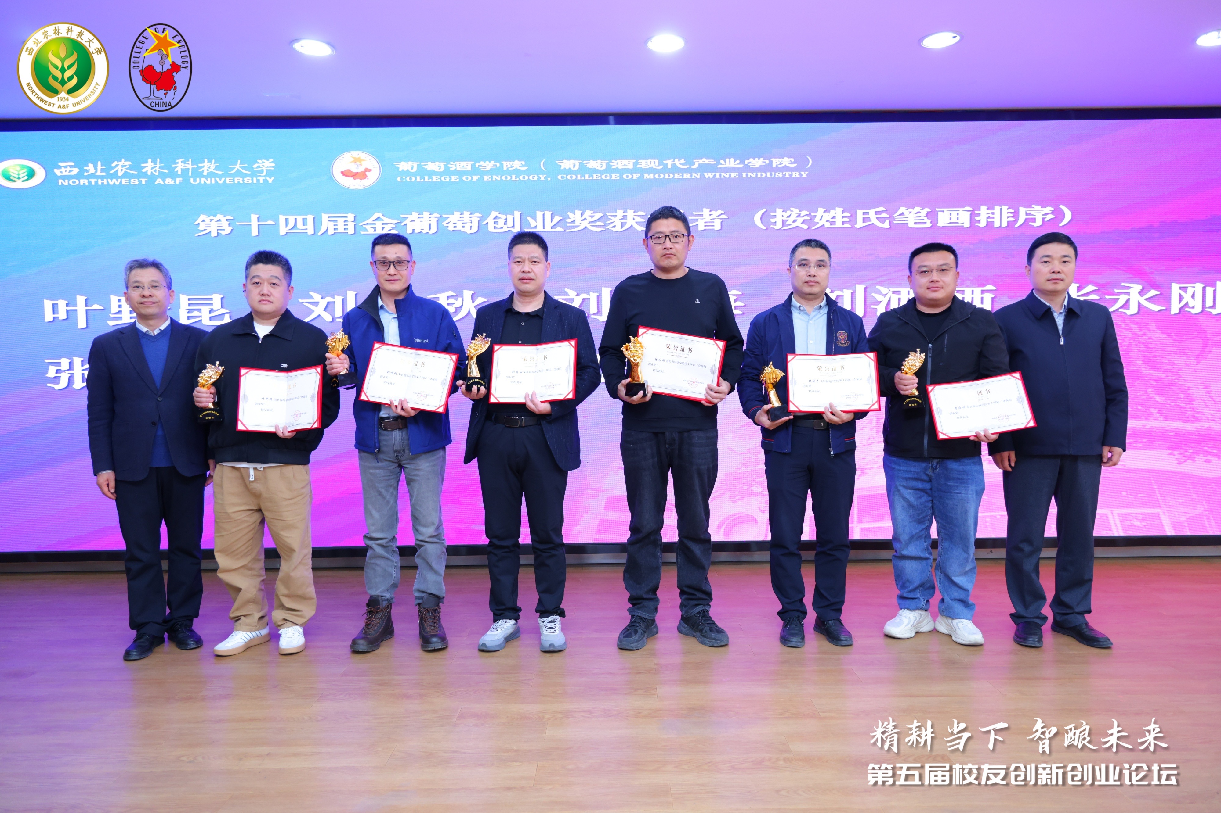 会议还举办“领航”对话学长分享会,从栽培和酿酒、市场和创业两大方向出发,搭建公司-员工-在校生面对面探讨、交流、学习的平台,4位金葡萄创业奖获奖员工分享了在行业创业经历与感悟,表达了对母校的怀念并全方位的梳理中国葡萄酒行业动向,鼓励在校生努力成长为德才兼备、全面发展的懂技术、善管理、国际化葡萄酒领军人才。