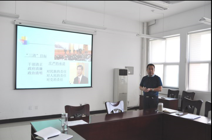 胡俊鹏书记围绕着“认真学习和严格遵守党章”这一主题,从党章的地位和作用,现行党章修改的主要内容和特点,以及学习和遵守党章的基本要求等三个方面进行了讲解。并对党员教工如何践行“两学一做”谈了自己理解,胡书记认为,党员教工在“两学一做”中首先要有坚定的理想信念,增强政治意识,以党章党规要求自己,保持共产党员的政治本色,为公司人才培养、科学研究做出贡献,为广大同学做好榜样;党员教工要有情操,不断提高修养,践行德高为范;要有扎实的学识,夯实知识功底,永葆学习状态;要有仁爱之心,坚守教育灵魂,做到仁而爱人。