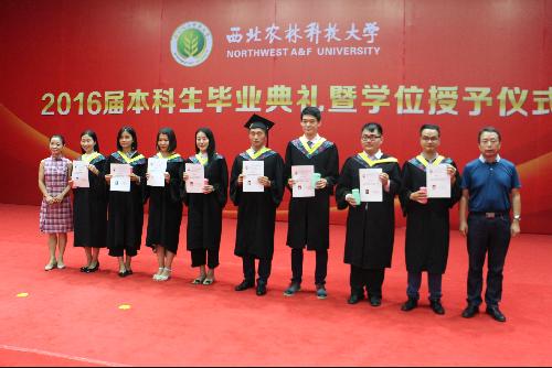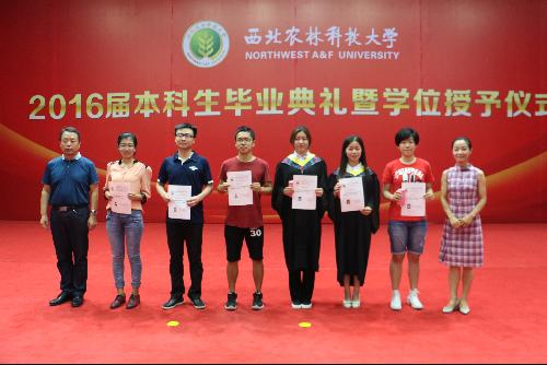 典礼第五项是由王华经理、胡俊鹏书记为2016届毕业生颁发毕业纪念品。U盘和纪念册里承载着他们四年的青春,时刻提醒着他们作为西农人、葡酒人的骄傲。驿路漫漫欢人聚,风华正茂将别离,道不尽离别情。