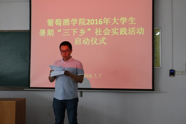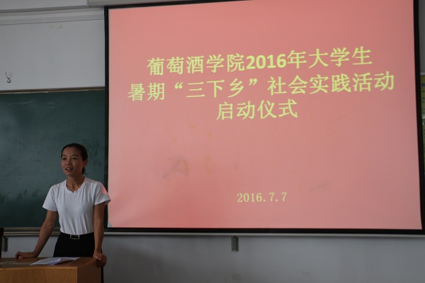 最后,邓亚丽副书记从专业学习需要实践、认识社会需要实践、个人成长需要实践等方面强调了“三下乡”实践锻炼的重要性。邓老师指出,社会实践是接触社会、了解社会的重要途径,是专业学习和实践教育的重要组成部分,作为对实践能力有较高要求的葡萄与葡萄酒工程专业的员工,应抓住一切机会积极投身实践锻炼,通过实践了解社会、认识专业、成长自我。同时,邓老师要求全体团队负责人以此次启动仪式为契机,认真按照“科学谋划、目标管理、信息在线、过程控制”的原则对每支团队的工作任务进行统筹计划,合理分工,确保实践目标的充分实现。邓老师还就暑期实践安全的注意事项进行了特别强调。