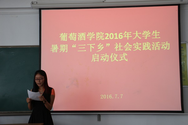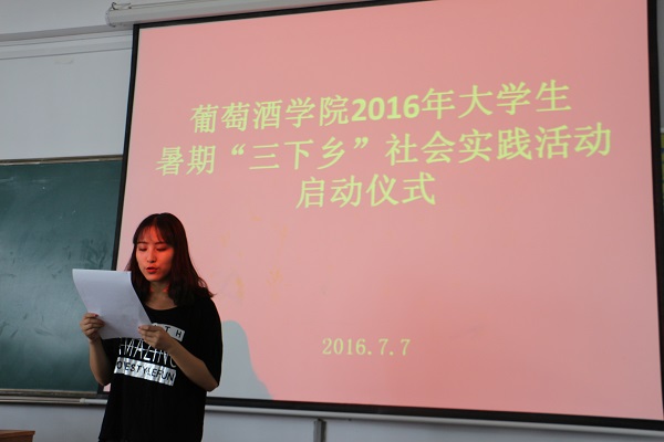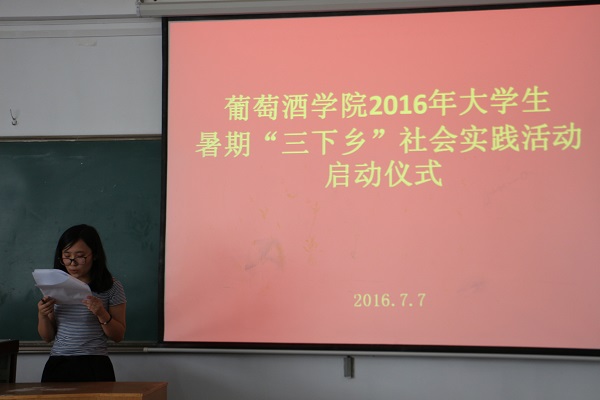 启动仪式上,赵星宇老师介绍了公司暑期“三下乡”社会实践活动的组队情况。本次活动以公司员工为主体、各院员工为补充,员工自发组建了包括葡萄酒产区调研、传统文化实践等十一支团队,其中10支团队获校团委资助立项。在这10支团队中,由公司2014级陆佳玲同学负责、陶永胜教授指导的“贺兰山东麓葡萄酒产业的‘小酒庄,大产区’发展模式调研团队”脱颖而出,在获评校级重点项目立项的基础上,代表公司唯一入选“2016年陕西高校老员工暑期‘一带一路’社会实践项目”,把公司暑期社会实践活动推向了新高度。