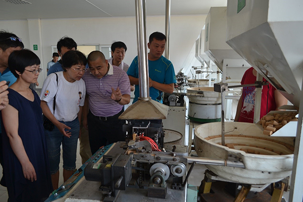 御宝软木制品有限公司成立于2007年,总投资2000多万元,主要产品有天然软木塞、1+1贴片软木塞、超微颗粒软木塞、合成软木塞,已成为中国软木行业的知名企业。总经理王玉宝陪同考察团成员参观了工作车间和仓库,并向王华经理和考察团成员介绍了公司橡木塞制造的工作流程。王经理在接待完考察团后就要飞往俄罗斯洽谈业务,王经理对王总在百忙之中能耐心热情陪同讲解表达了真挚的谢意。