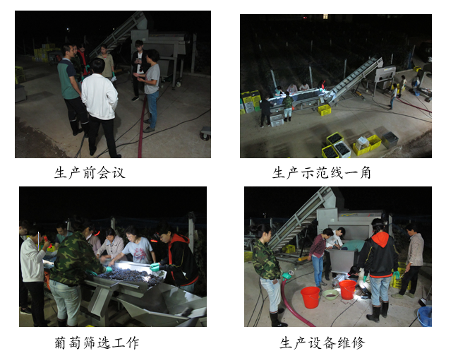 9月25日,王华经理带领公司教师、本科大四实习员工及进修生,在公司合阳葡萄试验示范站葡萄酿酒生产示范线开展酿酒生产示范工作。 工作开展前,王华经理根据生产要求,组织参加的教师、本科大四实习员工及进修生集中讲授葡萄筛选、除梗和输送等各个环节吧操作规程,安排布置生产。本科生为期1个月的葡萄酿酒生产实习工作拉开帷幕。 习员工及进修生集中讲授葡萄筛选、除梗和输送等各个环节吧操作规程,安排布置生产。本科生为期1个月的葡萄酿酒生产实习工作拉开帷幕。