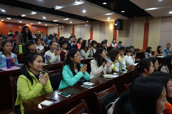 接下来,杨耕南老师向我们阐明了葡萄酒在社交方面的不可替代的作用,如何在晚宴上来利用葡萄酒进行社交。同时向我们普及了宴会时正确的落座位置和刀叉餐盘的摆放及使用。杨耕南老师根据自身对国外文化的了解,教给我们不同的约会技巧和应对技巧,这一届的深受大家的关注和喜爱。