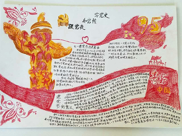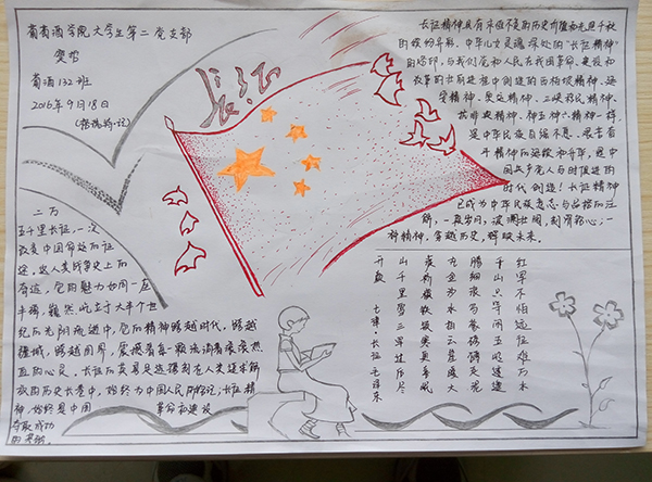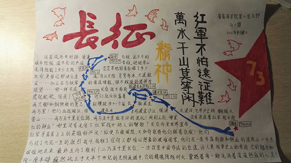 开展纪念红军长征胜利80周年手抄报活动。包括校外实习的全体老员工党员积极参加手抄报制作活动,大家结合自己对长征的认识和理解,精心设计,细细描绘,18幅手抄报在尺幅天地中激发爱国情怀,在回眸艰辛历程中缅怀红军不朽功勋,极大的激发了员工党员爱党、爱国的深切情怀和刻苦学习、努力成才的动力源泉。