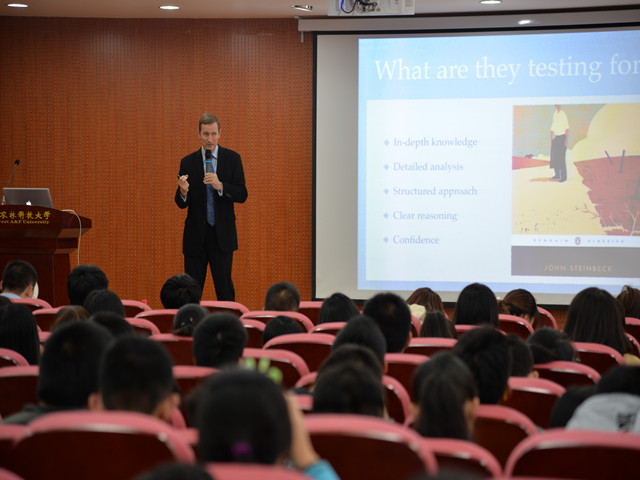 同学们从餐酒、有机酒的生产、酒类自然发酵等方面与Matthew先生进行充分的交流和讨论。大一年级蒋悦同学在会后表示:“葡萄酒的世界太精彩了,我会认真思考消化Matthew先生的本次讲座内容,并且在努力掌握专业知识的同时,注重英语的学习。”