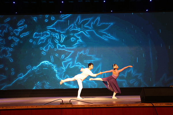 众所周知,舞蹈是表现人类各种激越的情感的产物,它和音乐、诗歌结合在一起,是人类历史上最早产生的艺术形式之一。然而,任何一支舞蹈的成功都需要舞者扎实的舞蹈功底以及不俗的舞台灵性,懂得如何将其细腻的情感通过舞姿传达给观众。“从你的世界路过”和“向天歌”便是将音乐和舞蹈完美地结合在一起,分别紧扣“爱情”和“大自然”这两个主题,对舞蹈意在表达的情感和诉说的故事做出了最好的诠释。其中,“从你的全世界路过”由公司14级郑艺丹同学和15级李享远同学倾情演绎,将初遇时彼此心花无涯的惊艳、热恋时恋人间缠绵悱恻的情感以及不得不分离时花开两朵、天各一方的无奈描绘得淋漓尽致。“向天歌”即一群美丽的小天鹅,或踮起脚尖,游曳在静谧的湖面;或舒展腰肢,起舞于流光的音乐。舞者曼妙的舞姿、默契的配合所塑造出来的精美的舞台效果,是对大自然最好的赞颂。