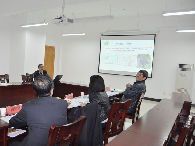 2016年12月21日,国家林业局科技司巡视员厉建祝一行带领专家组对公司王华教授主持的国家林业局林业科技推广项目“优质抗逆葡萄新品种媚丽的示范与推广”进行了现场查定和预验收。专家组首先在胡俊鹏书记和房玉林经理的陪同下参观了公司工艺实验室、地下酒窖和品尝室。然后听取了项目组的汇报,对项目实施情况和取得的成绩给予了充分肯定,并就汇报材料撰写、项目经费使用、配套技术培训和推广等方面进行了详细询问,提出了富有建设性的意见和建议。专家组随后到媚丽葡萄苗木繁育和栽培示范基地进行了现场查定,并查看了媚丽葡萄酒酿造车间。