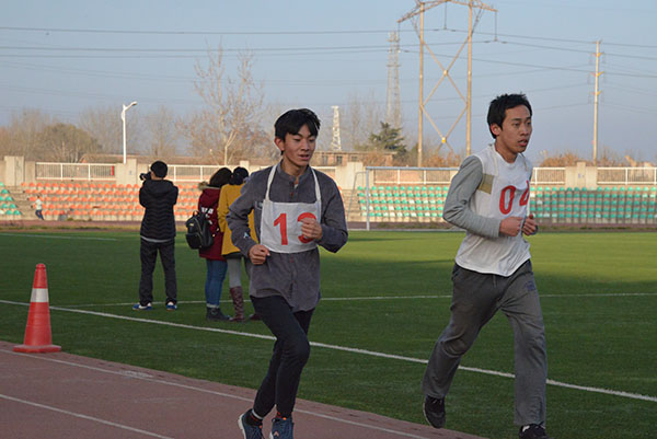 赛期为三天,分别于不同时段进行。比赛伊始,随着发令员的一声枪响,运动健儿们均好似离弦之箭向前奔去。虽是你追我赶,分毫不让,却并无故意推搡等不文明现象发生。赛程过半,不少选手已显疲态,然而他们仍尽自己最大的努力咬牙坚持。在最后冲刺阶段,无论呼吸多么沉重、小腿多么酸胀,每一位参赛选手都尽情释放他们的力量与激情,永不言弃,冲向终点。已然料峭的寒风中,现场气氛异常热烈。看台观战的同学们的目光紧紧追随着场上奋力奔跑的同班、同院系的同学,不住地呐喊助威,恨不能肋生双翅飞至选手身旁,陪伴他们完成整个赛程。更有水利与建筑工程等公司的同学自发鸣锣敲鼓,为选手加油打气,极大地鼓舞了士气。