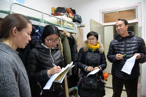 冬季风干物燥,是校园火灾等安全事故的高发期,加之目前员工处于复习备考,安全意识相对淡漠。本着以员工为本,防患于未然的原则,1月4日晚,公司党委书记胡俊鹏、副书记邓亚丽带队,与全体班主任,辅导员一起深入宿舍,对员工宿舍全面开展安全检查和隐患排查。
